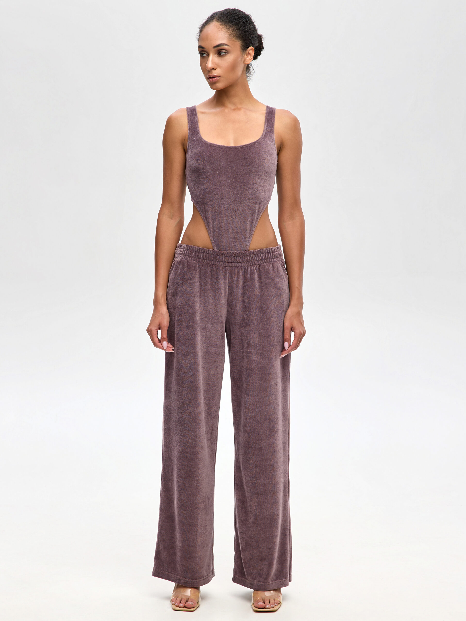 Акуратна посадка, рівна штанина і м’який пояс – жіночі модалові штани, що поєднуються з топом або oversize-джемпером. Це комфортний одяг для жінок, який працює від ранку до вечора: від кави вдома до повсякденних справ. Хочеш купити чи замовити жіночі велюрові штани? Ця модель дає саме ту саму легкість руху і тактильну насолоду! Відтінок «какао» універсальний і стриманий – виглядає доречно в будь-якому сценарії: офіс, зустрічі, прогулянки. Пряма штанина візуально витягує силует, не додаючи об’єму, а еластичний пояс м’яко фіксує талію без зайвого тиску. У парі з комфортним топом із велюру – мінімалістичний міський сет, а із велюровим джемпером на блискавці – тепліший, більш спортивний настрій. Це жіночий одяг з м’якої тканини: дихає, приємно торкається шкіри, зберігає форму протягом дня. Трендовий велюровий одяг у цій моделі не вимагає складних аксесуарів – працює чиста лінія та текстура. Якщо плануєш замовити онлайн, ці штани стануть базою для капсульного гардеробу з велюру, яка легко міксується з кедами, лоферами чи мюлями. Практичність, стиль і відчуття впевненості – у кожному кроці.